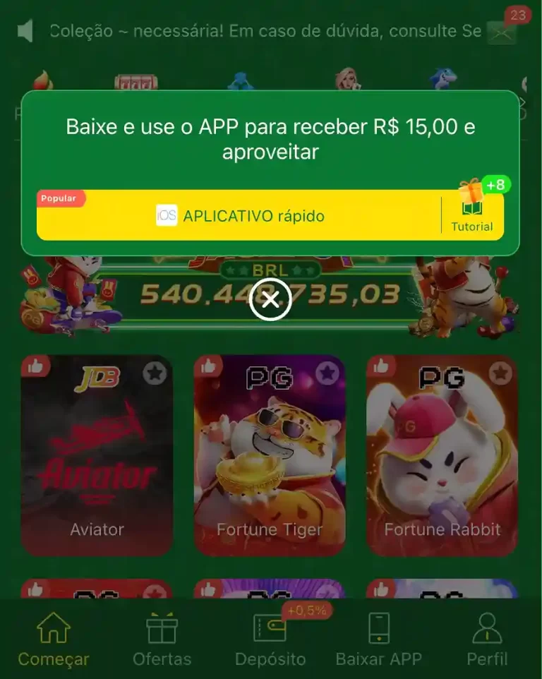 O BET10 oferece uma grande variedade que inclui: máquinas caça-níqueis populares como Fortune Tiger, jogos de cassino ao vivo (roleta, blackjack), jogos de pesca e a seção de apostas esportivas.